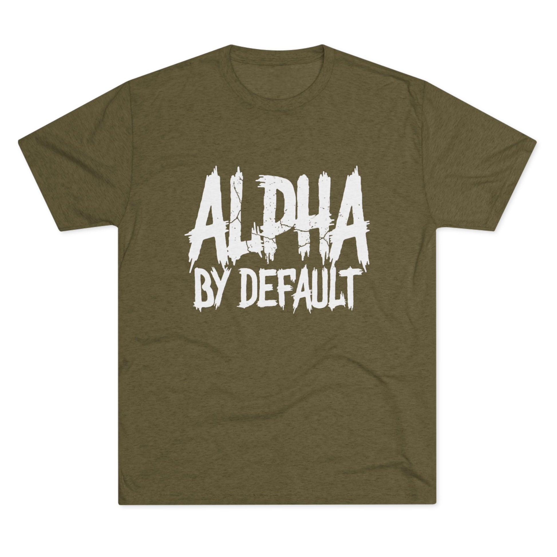 Bold, textured lettering declares confidence without shouting. This tri-blend tee sits light and drapey on the shoulders, letting the distressed “ALPHA BY DEFAULT” artwork take center stage. Wear it as a quiet assertion—for mornings when you need to own the room, for late-night sessions at the gym, or for meetups where you want an edge without trying too hard. The soft, breathable fabric moves with you and keeps the message clear: composed, uncompromising, and ready to lead.